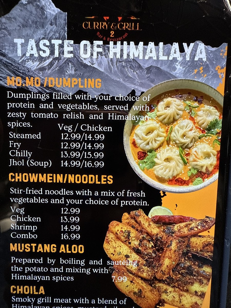 A bite of Nepal! Soft, juicy, and bursting with flavor, Momo dumplings are a beloved street food from the Himalayas! These delicate dumplings are filled with lot of spices like meat or veggies. (steam or fried)